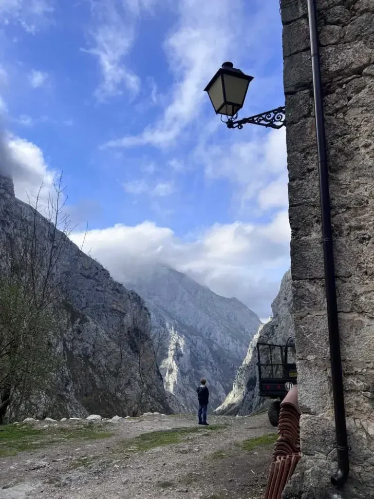 When you get to the top it’s hard to overstate how dramatic the setting is.  You emerge into a high mountain canyon with towering monoliths on all sides with their tops obscured in clouds.  It is impossible for a village to exist.  And yet Bulnes is there with great places to stay and eat along a small mountain creek.